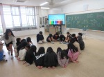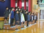 全校児童が見守る中、歌を披露した子ども達は、少し緊張