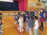 び方を説明しこども園の子達を楽しませていました。