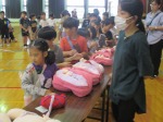 子ども達は赤ちゃんの模型を触ったり、抱っこしたりして